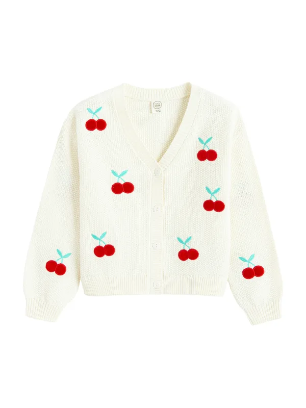 Design: Knop placket, Geribd ceintuurtje; Type sluiting: Knoopsluiting; Materiaal: Knitwear; Halstype: V-hals; Details: Borduursels; Extra's: Voelt zacht aan; Pasvorm: Normale pasvorm; Armlengte: Lange mouw; Lengte: Normale lengte