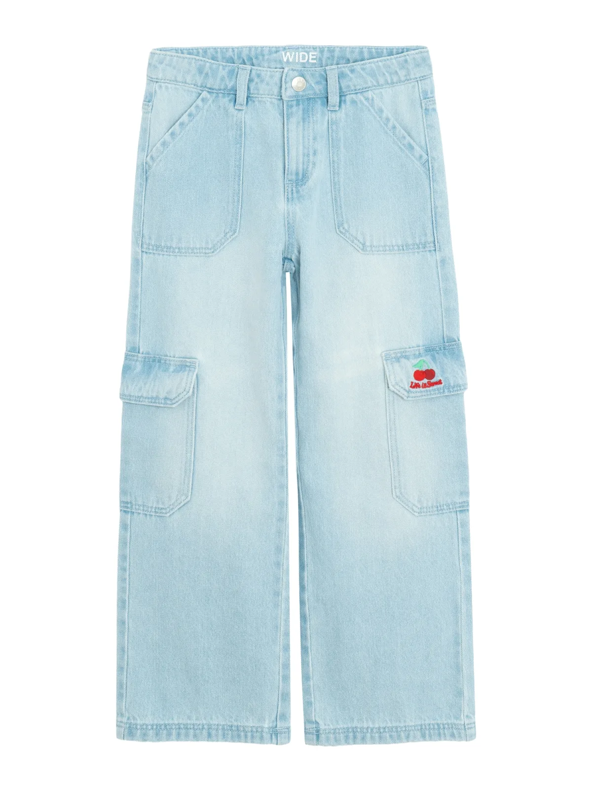 Design: Ritssluiting, Cargozak, Zakken aan de zijkant; Type sluiting: Knoopsluiting; Materiaal: Denim; Motief: Effen; Details: Borduursels; Extra's: Riemlussen; Wassing: Blauw denim; Lengte: Lang/maxi; Pasvorm: Wide leg
