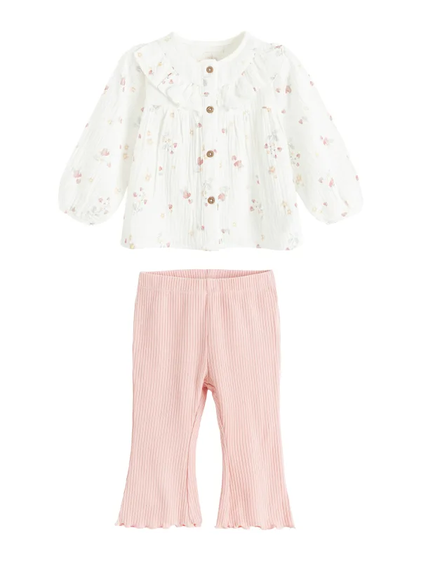 Design: Gevoerde zoom/rand, Elastische taille/zoom, Gerolde boord; Materiaal: Katoen; Aantal per set: 2-delig; Lengte: Lang/maxi; Setinhalt Kleidung: Shirt, Hose; Pasvorm: Normale pasvorm; Armlengte: Lange mouw