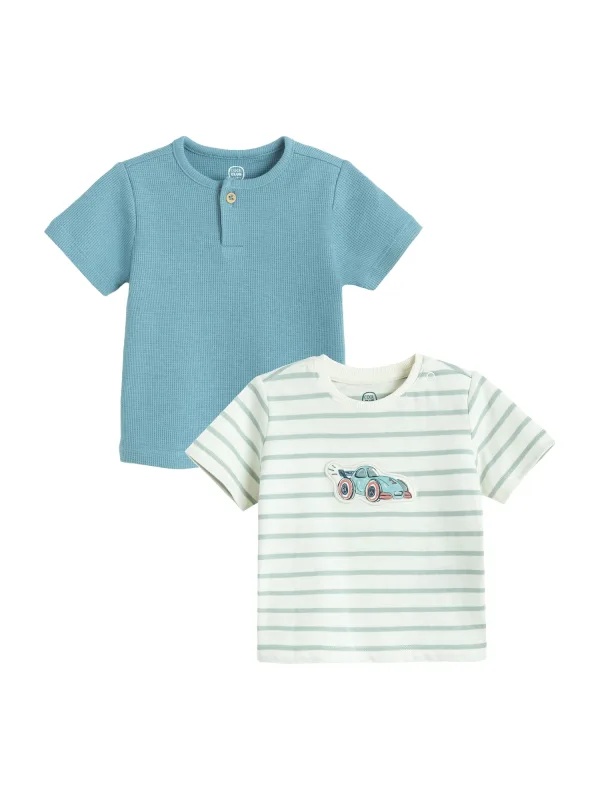 Design: Geribbelde kraag; Materiaal: Katoen; Halstype: Ronde hals; Motief: Gestreept; Extra's: Voelt zacht aan; Pasvorm: Normale pasvorm; Aantal: 2 Pack; Armlengte: Kwartmouw