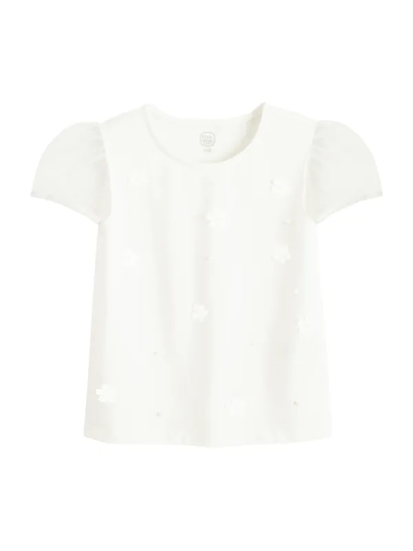 Design: Gevoerde zoom/rand; Materiaal: Katoen; Halstype: Ronde hals; Motief: Effen; Details: Parels; Extra's: Applicaties, Op staal naden; Pasvorm: Normale pasvorm; Armlengte: Kwartmouw; Lengte: Normale lengte