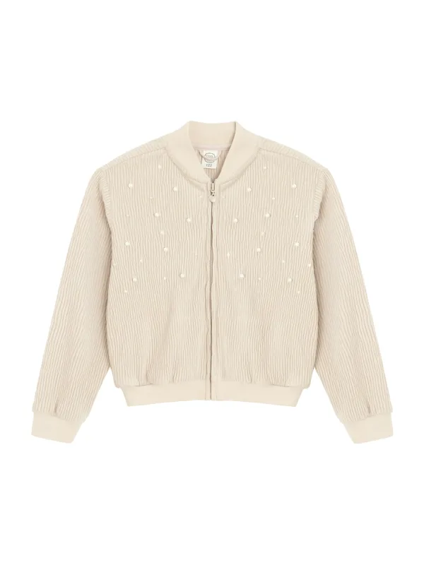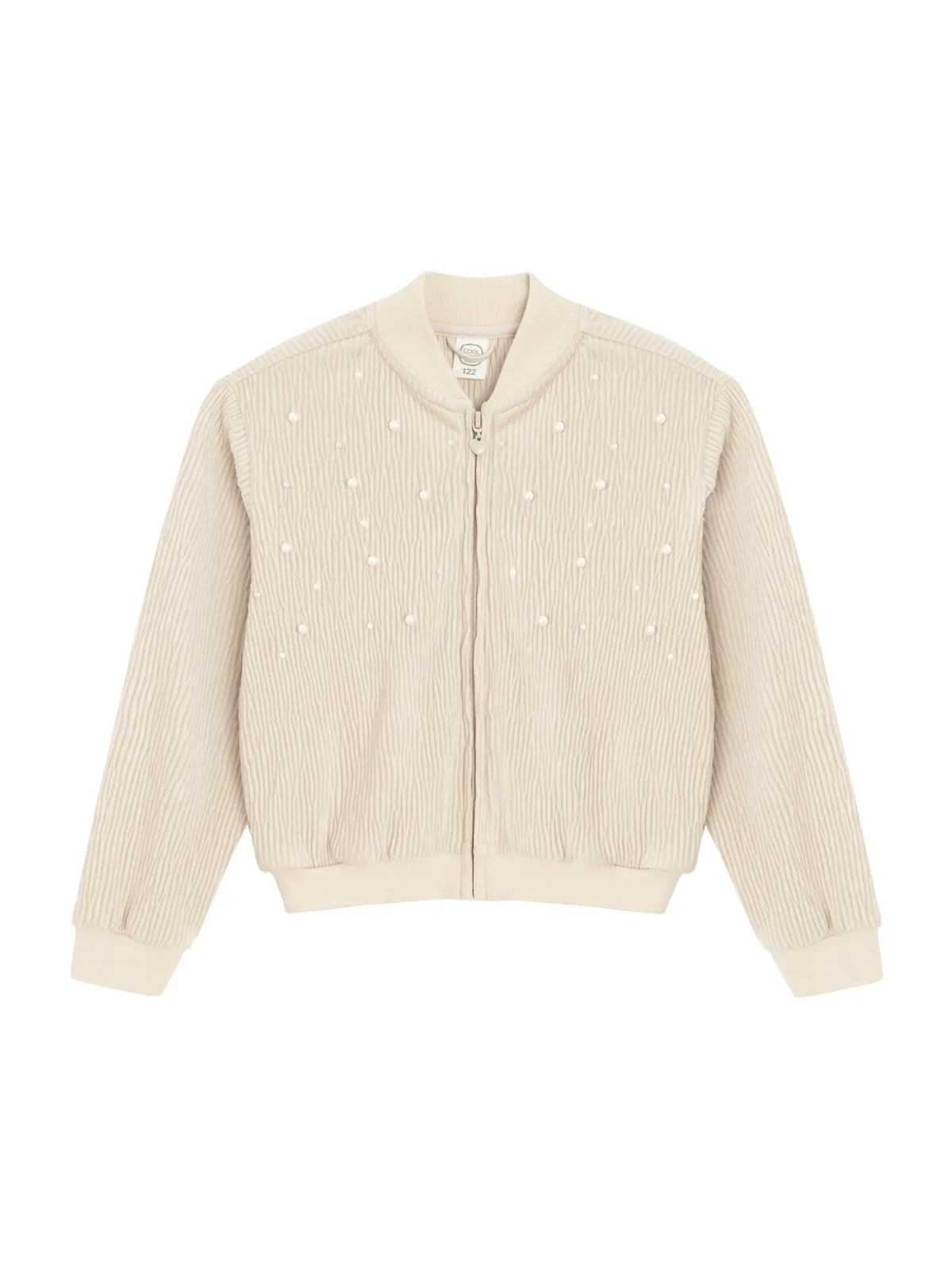 Design: Geribd ceintuurtje; Type sluiting: Ritssluiting; Materiaal: Sweatstof; Halstype: Opstaande kraag; Motief: Effen; Details: Parels; Extra's: Met textuur; Pasvorm: Normale pasvorm; Armlengte: Lange mouw; Lengte: Normale lengte