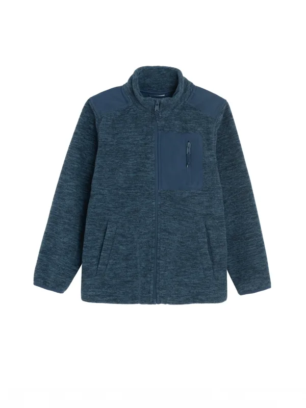 Design: Borstzak, Zakken aan de zijkant; Type sluiting: Ritssluiting; Materiaal: Sweatstof; Halstype: Opstaande kraag; Motief: Mélange; Extra's: Buigzame grip; Pasvorm: Normale pasvorm; Armlengte: Lange mouw