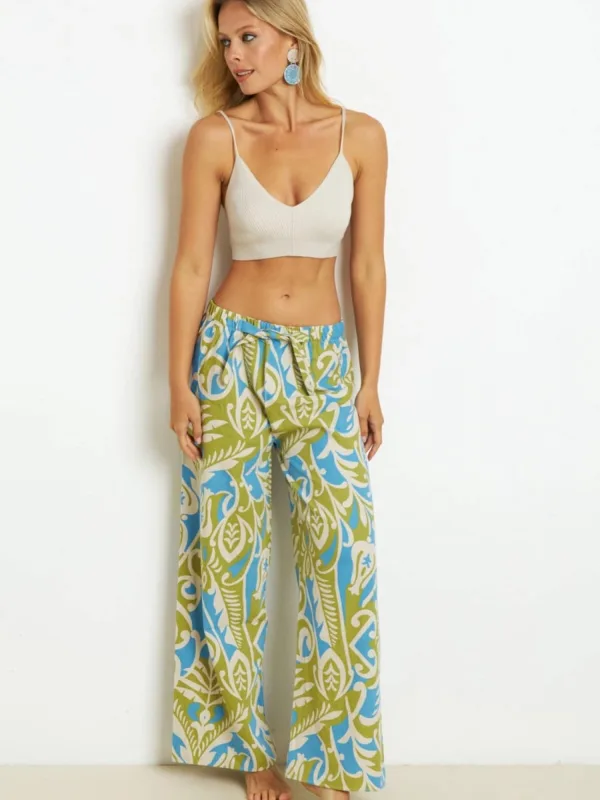 Design: Gevoerde zoom/rand, Elastische taille/zoom; Materiaal: Linnen; Details: Gedrapeerd; Extra's: All-over patroon; Lengte: Lang/maxi; Pasvorm: Wide leg; Taillehoogte: Mid waist