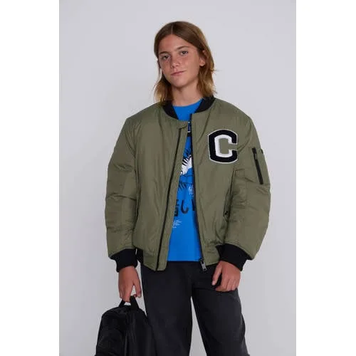 Dit bomberjack voor jongens van Coolcat is gemaakt van nylon. De jas heeft een ronde hals, lange mouwen en een ritssluiting.Details van deze jas:2 afsluitbare zakkenPatch op voorpandZak met ritsje op mouwAfsluitbare binnenzakContrasterende ribbing, kraag en rits