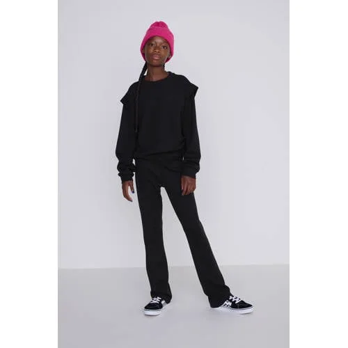 Deze flare broek voor meisjes van Coolcat is gemaakt van een viscosemix. De broek heeft een elastische tailleband.Details van deze broek:3D logo op voorpandTe combineren met bijpassende sweater Topaz