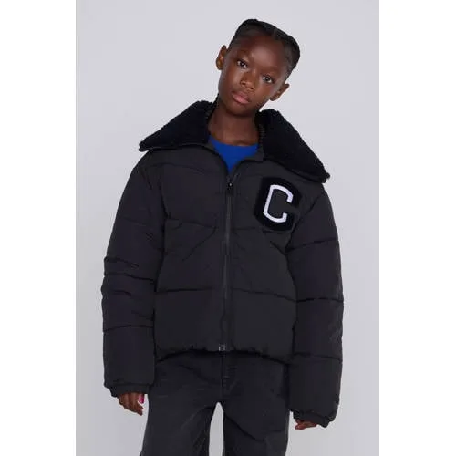 Coolcat Puffer Winterjas Joyce met Teddy Kraag Zwart
