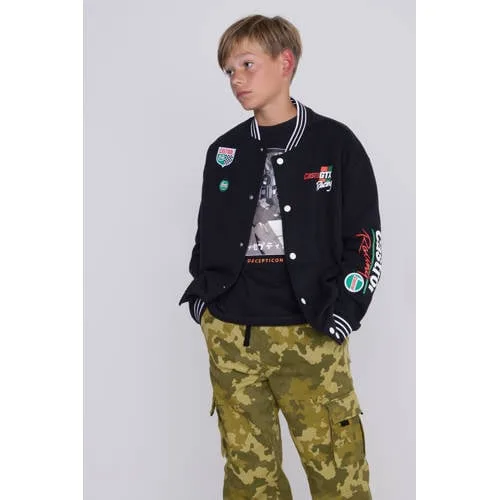 Dit sweatvest voor kids van Coolcat is gemaakt van katoen. Het vest heeft een opstaande kraag en lange mouwen en is geschikt voor zowel jongens als meisjes.Details van dit bomberjack:Gestreepte ribbingDrukknoop sluitingPatches op voorpand