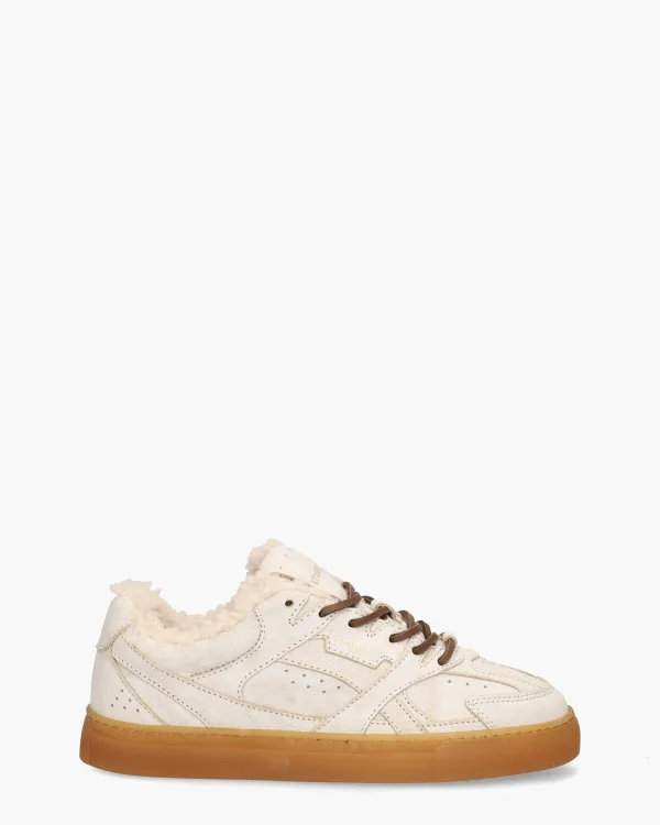 Warm van binnen, stijlvol van buiten– de Copenhagen Studios CPH63 damessneakers zijn gemaakt voor dagen waarop comfort en design hand in hand gaan. Deze zachte suède sneakers in een lichte off-white tint met een vintage beige poetsing voelen niet alleen luxe aan, maar springen ook meteen in het oog door de cozy lamswollen voering.Perfect