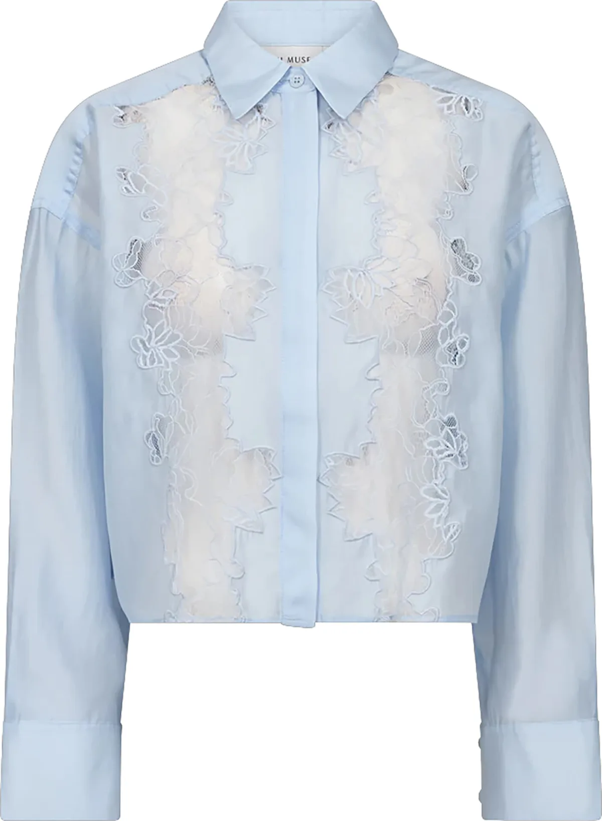 Blouse Molly blouse van Copenhagen Muse heeft een cropped fit met lange mouwen, spreidkraag en knoopsluiting. De manchetten sluiten met knopen. Het bloemenpatroon komt terug in verfijnde, geborduurde applicaties op het voorpand. Draag netjes met een pantalon of trendy op een high-waist jeans.