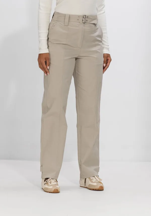 De cmlucy pantalon van cph muse komt in een zachte kiezelgrijs-beige tint en voelt direct licht en koel aan op de huid dankzij de mix van katoen, elastane en polyamide. De normale taille en reguliere pasvorm geven je voldoende bewegingsvrijheid terwijl de broek toch een verzorgde, nonchalante uitstraling behoudt; je kunt hem recht dragen of subtiel toelopen dankzij het verstelbare bandje bij de enkel. Fijne stiksels en een ingetogen zak op één been geven deze pantalon karakter zonder te overheersen, waardoor hij moeiteloos combineert met het bijpassende CMLucy shirt van dezelfde stof. Twee smalle bandjes met gesp in de tailleband voegen een speels detail toe en zorgen voor een net accent aan de taille. De stof vloeit mooi langs het been en voelt ademend, ideaal voor dagen waarop je fris maar stijlvol voor de dag wilt komen. Door de ingetogen kleur en het verfijnde silhouet werkt deze pantalon als een veelzijdige basis in je garderobe. Draag hem naar werk of in je vrije tijd en ervaar hoe een subtiel detail je look net dat beetje extra geeft.