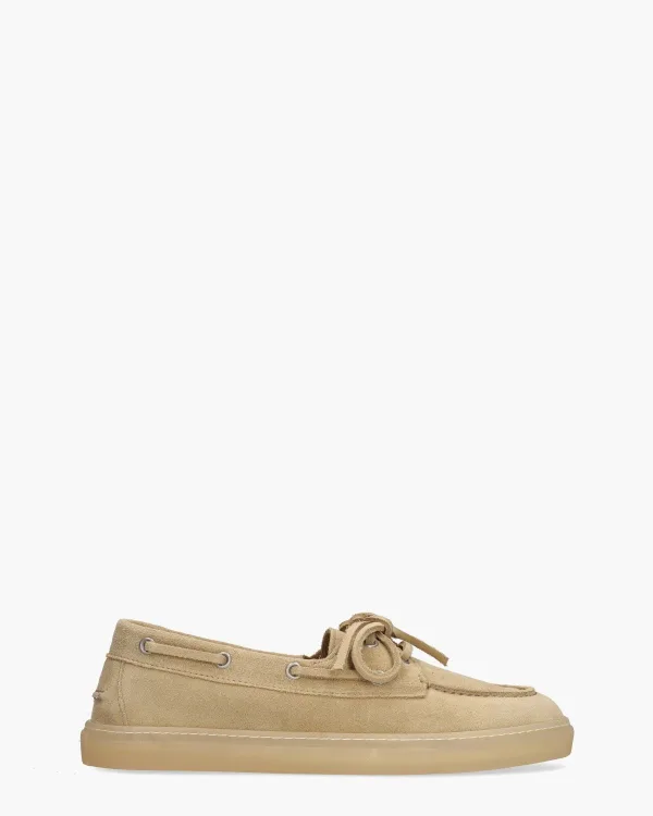De CPH160 dames veterschoenen van Copenhagen Studios combineren een lichtbruin suède bovenwerk met een verfijnde mocassin-afwerking. Subtiele stiknaden geven het ontwerp extra diepte. De suède voering en het uitneembare suède voetbed met zachte vulling zorgen voor een aangenaam draaggevoel. De flexibele rubberen zool houdt het model