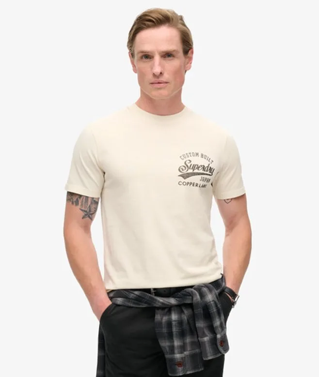 - Bij superdry.nl kun je Copper Label T-shirt met Grafische Print op de Borst Crme kopen voor slechts €39,99