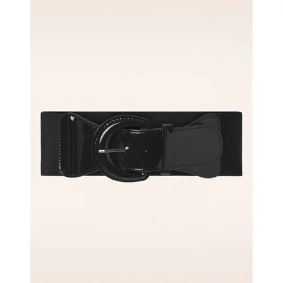Met deze Corinne Elastic Riem in Zwart creëer je een prachtige look in een handomdraai! Uitgevoerd in zwart 'faux' lak leder met een ronde vintage stijl gesp en een comfy elastische band. Je mag trots zijn op je silhouet! * Elastische band * Ronde gesp * Verstelbaar