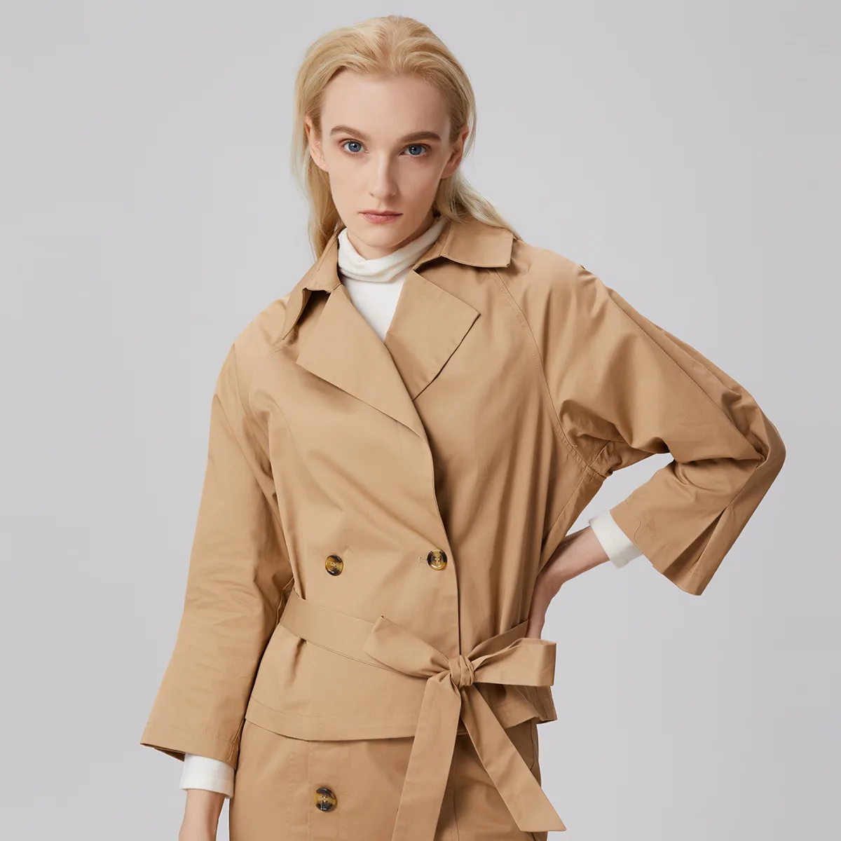 Een lichte jas voor het middenseizoen met een klassieke snit met kleermakerskraag, grote Raglan 7/8 mouwen, gesloten door 2 knopen en een toegevoegde riem. Om je stadsoutfits zoals jeans en blouse of rok en t-shirt te verbeteren. Je kunt ook de totale look spelen met onze "rechte rok met dubbele rijs". Productdetails: Lengte: 59 cm Model draagt maat 10 Modelhoogte is 5 "7 Vorm: recht, los Kraag op maat Lange mouwen 7/8 MIDDEN VOORKOPEN Stoffengordel verstrekt