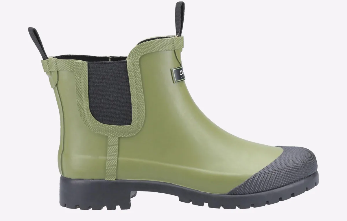 Korte rubberen dames regenlaars van Cotswold Shoes, Blenheim heeft de klassieke Chelsea-look en is niet alleen voor de tuin! Dit model zou er geweldig uitzien onder je spijkerbroek in de stad, het is zeer flexibel met een sterk geprofileerde zool voor grip en duurzaamheid
