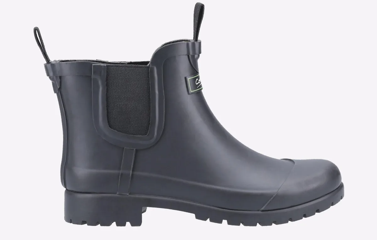 Korte rubberen dames regenlaars van Cotswold Shoes, Blenheim heeft de klassieke Chelsea-look en is niet alleen voor de tuin! Dit model zou er geweldig uitzien onder je spijkerbroek in de stad, het is zeer flexibel met een sterk geprofileerde zool voor grip en duurzaamheid