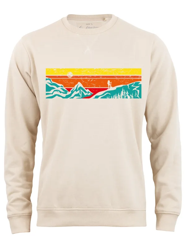 Specificaties: Cotton Prime Sweatshirt ‘Let’s Hiking’ beige / blauw / geel / oranje