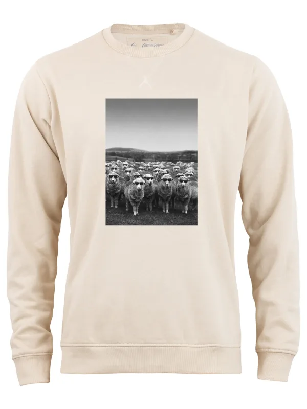 Cotton Prime Sweatshirt ‘Schafe’ ivoor / zwart / wit
