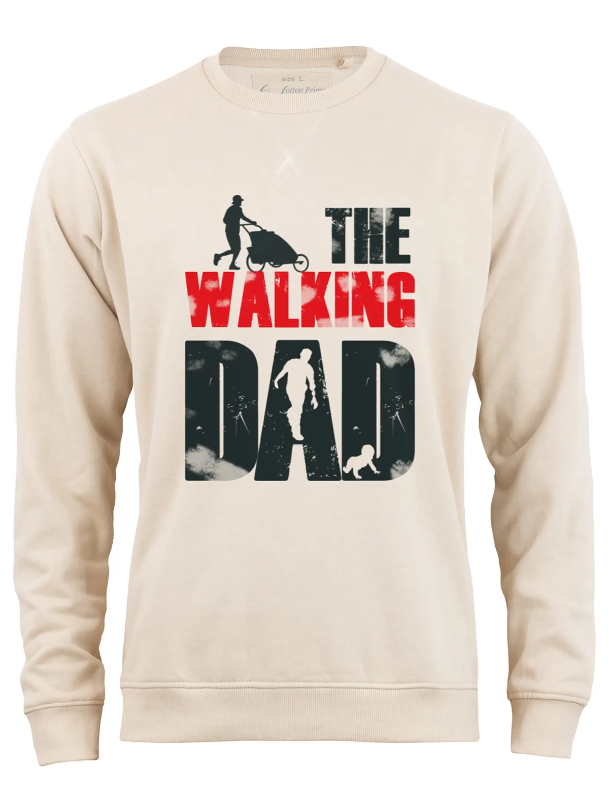 Specificaties: Cotton Prime Sweatshirt ‘Walking Dad ‘ beige / rood / zwart