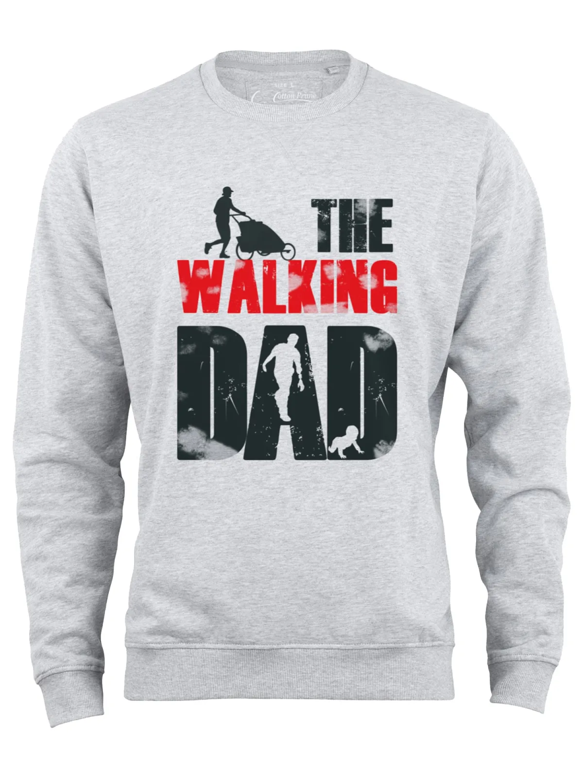 Specificaties: Cotton Prime Sweatshirt ‘Walking Dad ‘ stone grey / knalrood / zwart