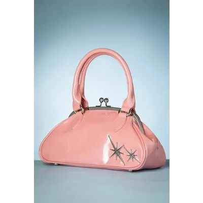 ''It is written in the stars!'' Want deze kleine handtas hoort gewoon aan jouw arm te bungelen! Uitgevoerd in poederroze imitatie lakleder met twee zilverkleurige sterren op de voorkant, een zilverkleurige klipsluiting en korte, stevig hengsels. * Zilverkleurige klipsluiting * Binnenvak met 2 extra vakjes, waarvan 1 met rits * Zilverkleurige details * Wordt geleverd met een los, verstelbaar hengsel * Kan crossbody gedragen worden * Beschermpootjes onderzijde * Groot genoeg voor je telefoon, portemonnee, sleutels en je favo lippenstift