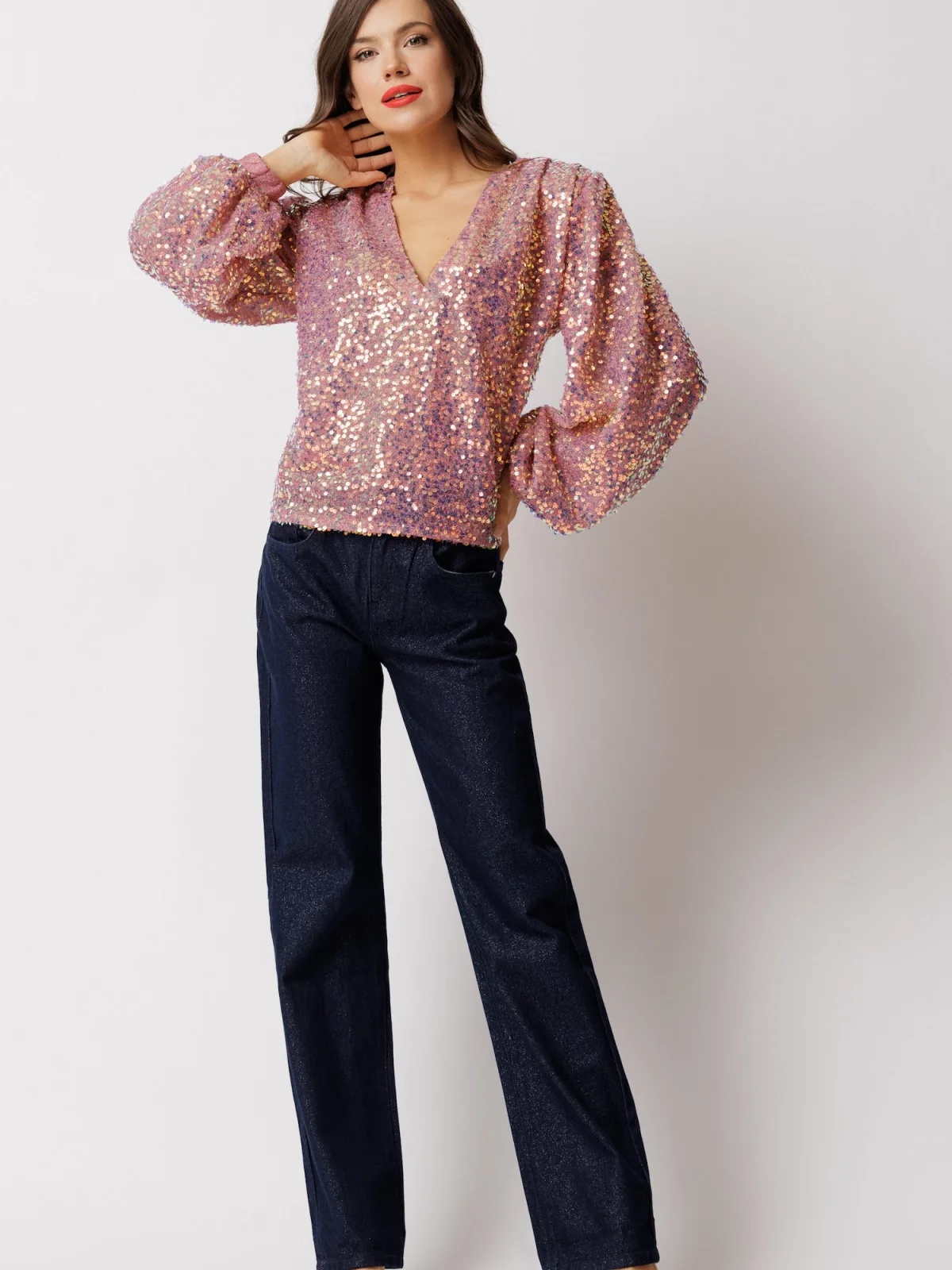 Blouse type: Blouseshirt; Kraag: Zonder kraag; Details: Pailletten; Pasvorm: Normale pasvorm; Armlengte: Lange mouw; Lengte: Normale lengte