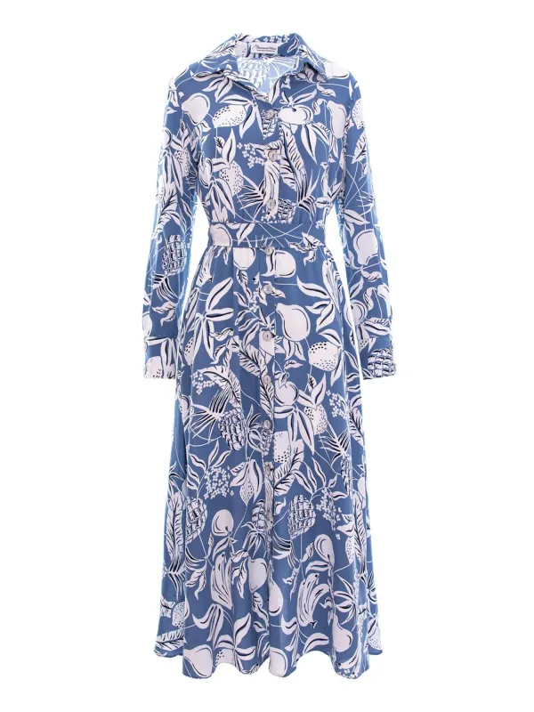 Materiaal: Katoen, Viscose; Motief: Bloemenprint; Kraag: Kentkraag; Soort bandjes: Normale bandjes; Lengte: Knielengte; Pasvorm: Normale pasvorm; Armlengte: Lange mouw