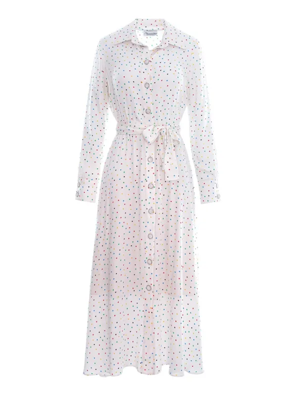 Materiaal: Katoen, Viscose; Motief: Gestippeld; Kraag: Kentkraag; Soort bandjes: Normale bandjes; Lengte: Knielengte; Pasvorm: Normale pasvorm; Armlengte: Lange mouw