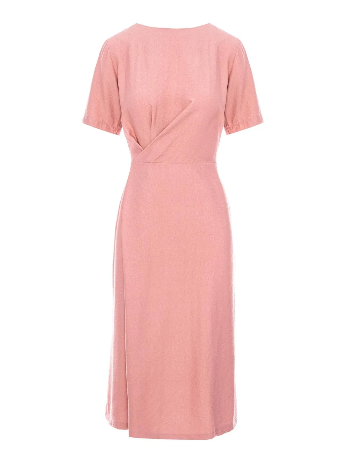 Materiaal: Viscose; Halstype: Ronde hals; Motief: Effen; Soort bandjes: Normale bandjes; Details: Gedrapeerd; Lengte: Knielengte; Pasvorm: Normale pasvorm; Armlengte: Kwartmouw