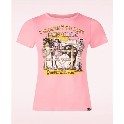 “I Heard You Like Bad Girls”. Dit roze T-shirt met ronde halslijn is perfect voor een casual retro-look. De print van een stoere cowgirl op de voorzijde maakt een speels statement, terwijl de zachte katoenmix heerlijk comfortabel draagt. * Ronde halslijn * Korte mouwen * Lang genoeg om op een normale heupbroek te dragen