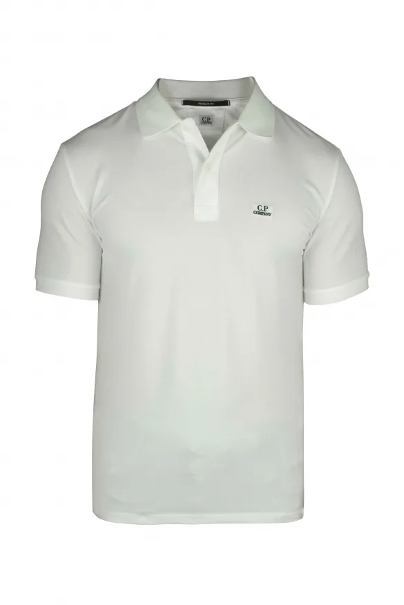 Witte C.P. Compagny poloshirt met geborduurd logo.Knopdownkraag.Discreet zwart logo rechtsboven.Korte mouwen.Gemaakt van katoen.Gemaakt in Italië.
