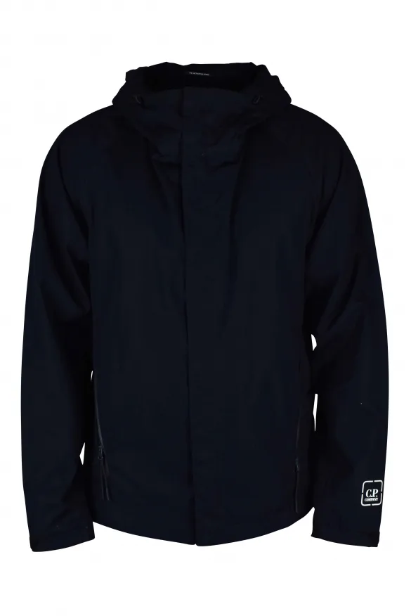 Waterdicht jack met capuchon van C.P Company.Marineblauwe Hydro Stop Tela-stof.Ritssluiting over de volledige lengte.Logo op de mouw.Twee zijzakken met ritssluiting.Verstelbare capuchon, zoom en manchetten.