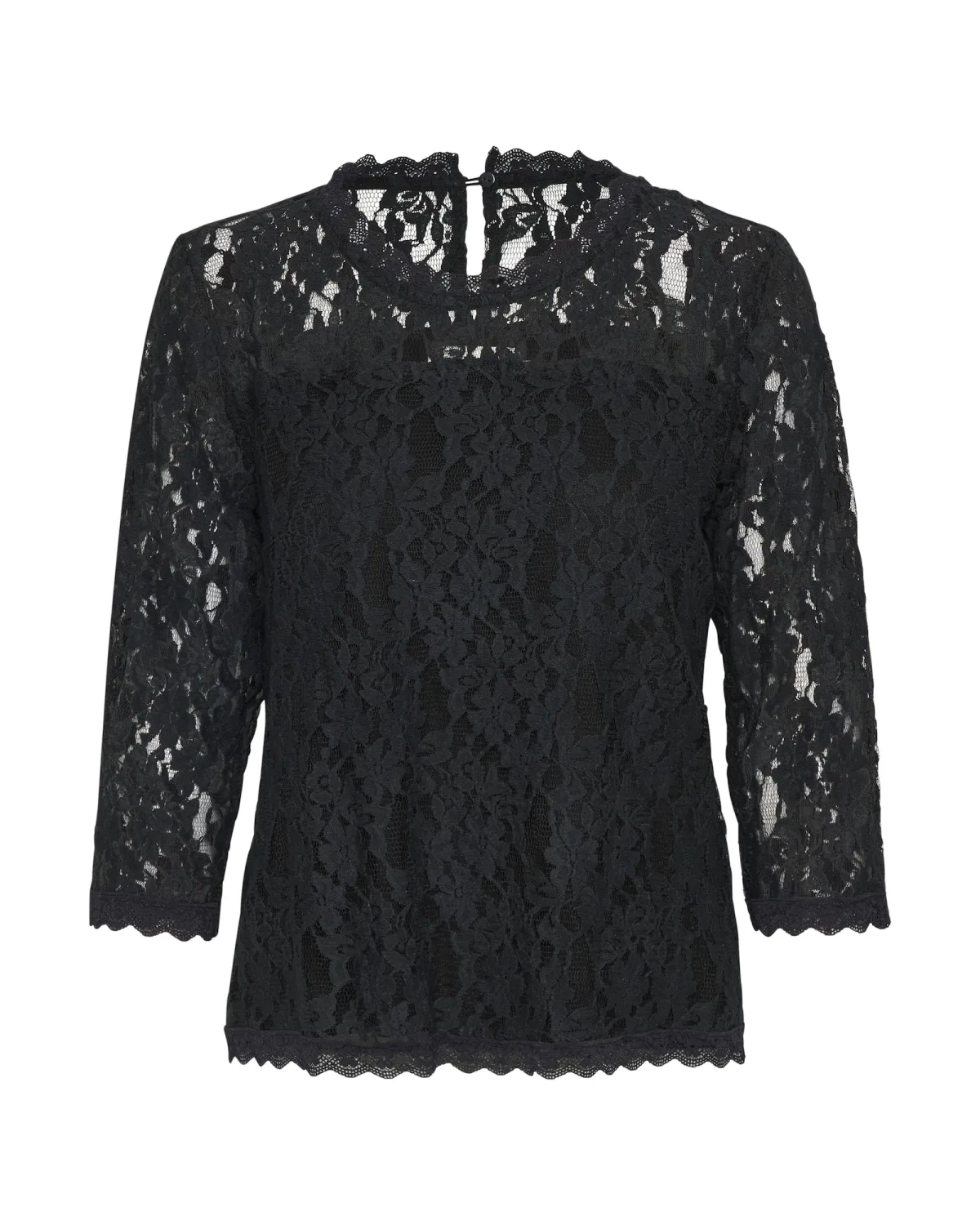 Blouse type: Blouseshirt; Design: Knop placket; Type sluiting: Knoopsluiting; Motief: Effen; Kraag: Opstaande kraag; Details: Cut-outs, Kant; Extra's: Op staal naden; Pasvorm: Normale pasvorm; Armlengte: Driekwart mouw; Lengte: Normale lengte