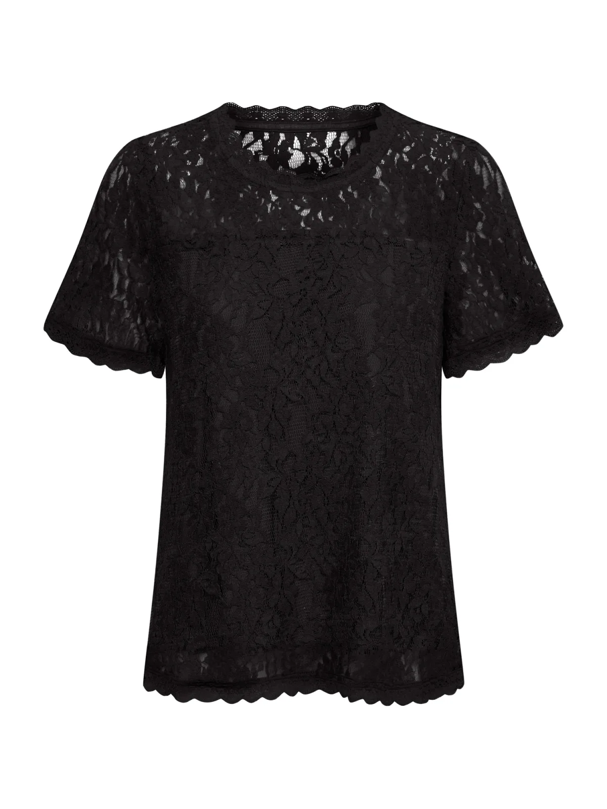 Blouse type: Blouseshirt; Design: Gevoerde zoom/rand; Motief: Effen; Kraag: Zonder kraag; Details: Kant; Extra's: Licht transparant, Gestructureerd oppervlak, Op staal naden; Pasvorm: Normale pasvorm; Armlengte: Kwartmouw; Lengte: Normale lengte
