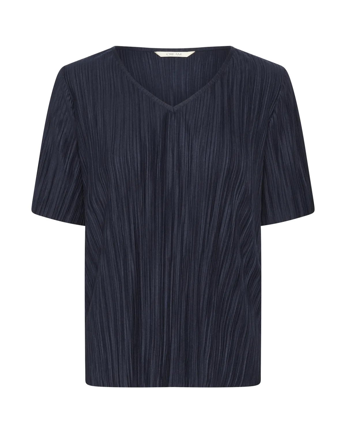 Blouse type: Klassieke blouse; Design: Gevoerde zoom/rand; Materiaal: Viscose; Motief: Effen; Kraag: Zonder kraag; Details: Plissé; Extra's: Op staal naden, Met textuur; Pasvorm: Normale pasvorm; Armlengte: Halve mouw; Lengte: Normale lengte