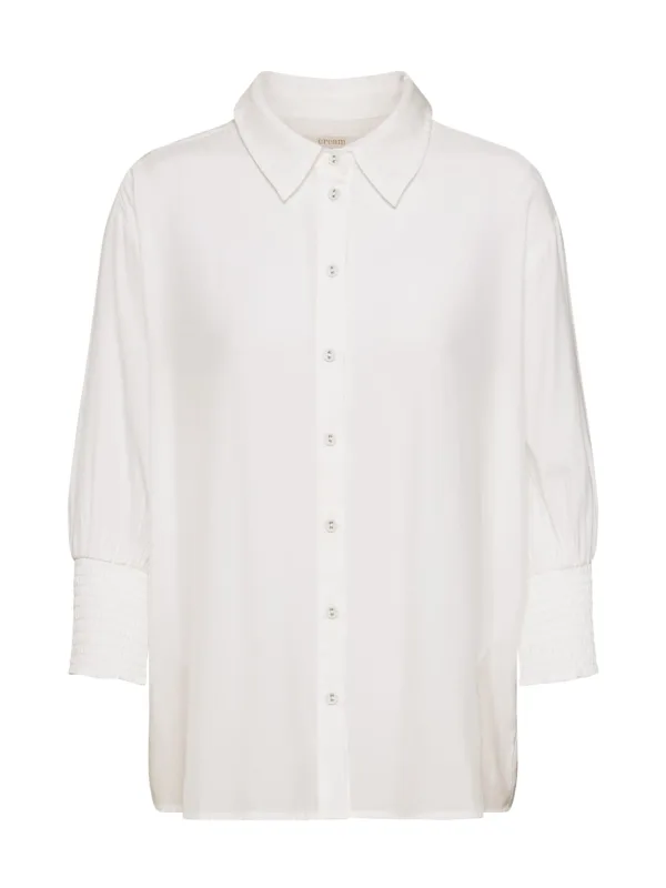 Blouse type: Klassieke blouse; Design: Rechte zoom, Losvallend model; Type sluiting: Knoopsluiting; Materiaal: Viscose; Motief: Effen; Kraag: Kentkraag; Details: Plooien, Gedrapeerd; Extra's: Gladde stof; Pasvorm: Wijde pasvorm; Armlengte: Driekwart mouw; Lengte: Normale lengte