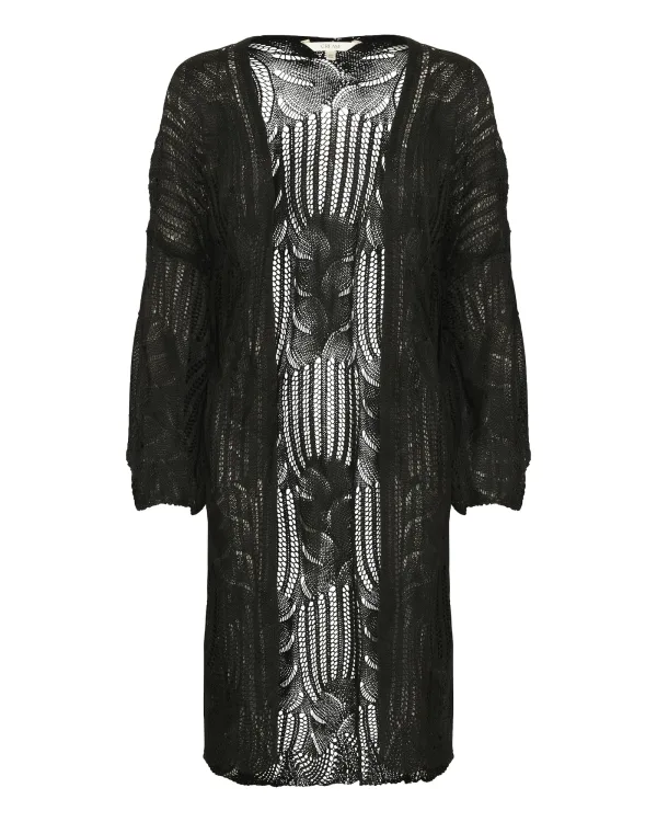 Design: Rechte zoom, Zonder sluiting; Materiaal: Knitwear; Motief: Effen; Details: Mesh; Extra's: Licht transparant, Voelt zacht aan; Pasvorm: Losse pasvorm; Armlengte: Driekwart mouw; Lengte: Lange pasvorm