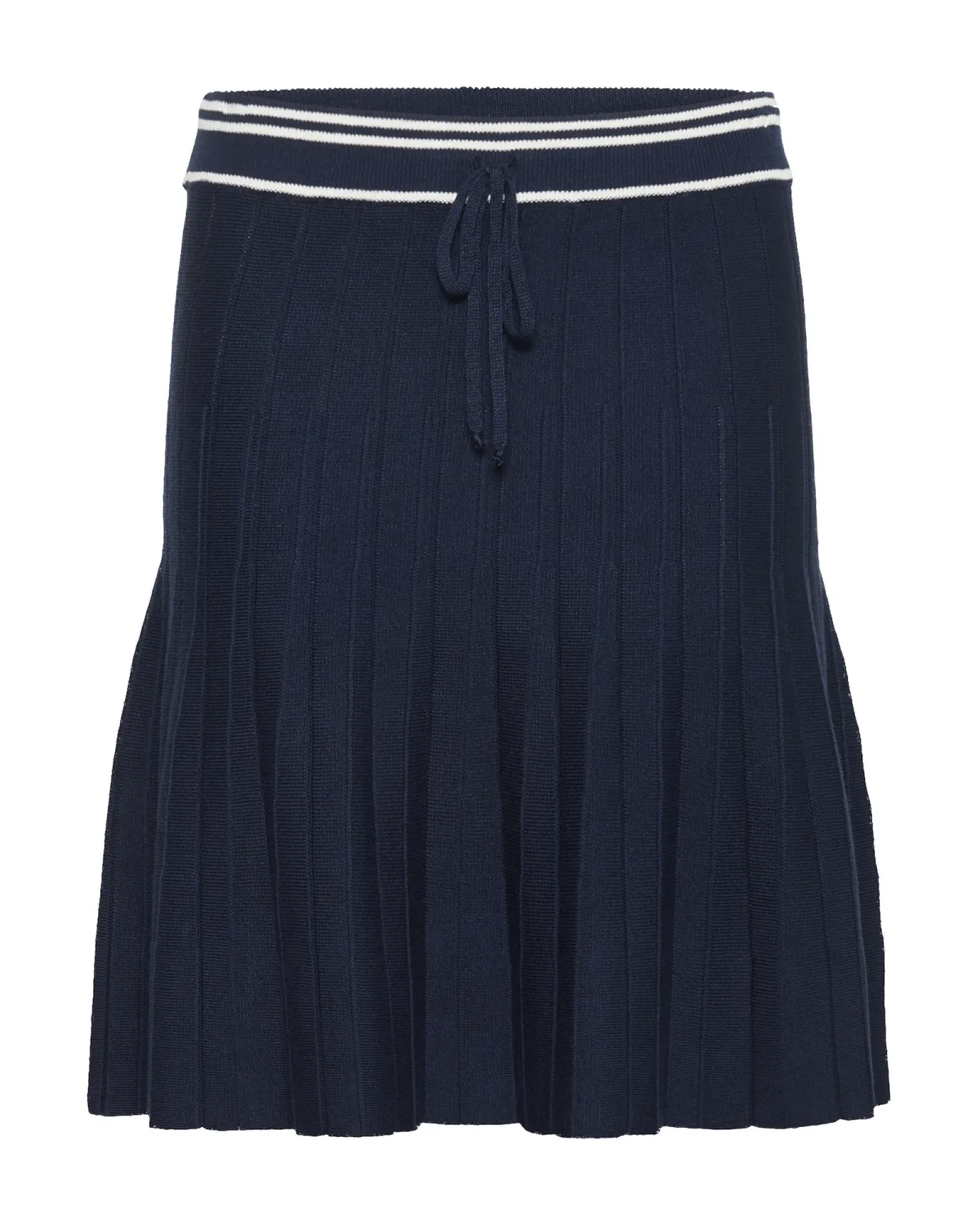 Deze geplooide gebreide rok biedt een comfortabele pasvorm met een elastische tailleband en trekkoord. De middellange lengte en tijdloze uitstraling maken het ideaal voor diverse gelegenheden.