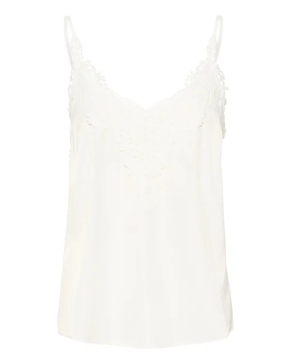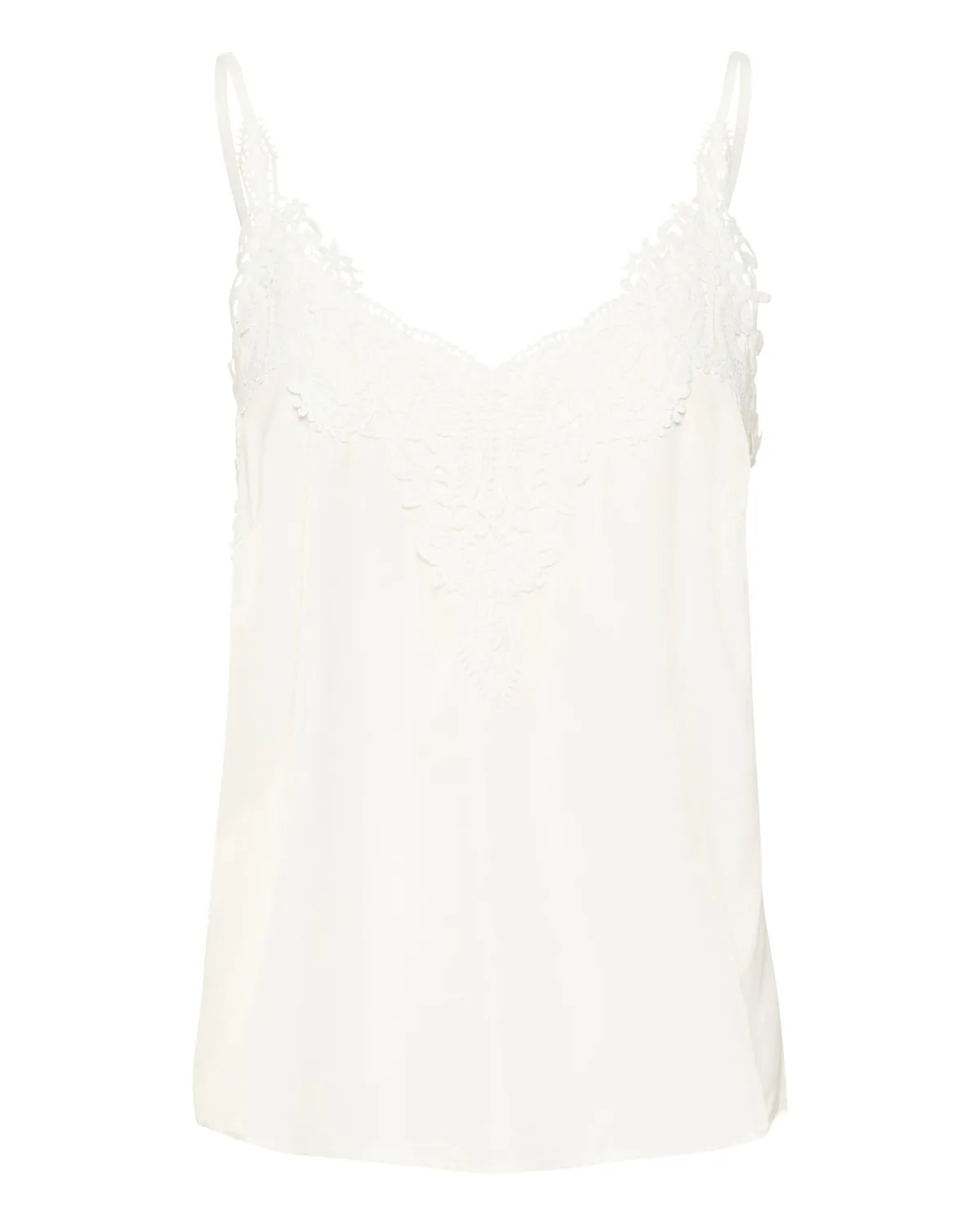 Blouse type: Blouseshirt; Design: Gevoerde zoom/rand; Materiaal: Viscose; Halstype: V-hals; Motief: Effen; Kraag: Zonder kraag; Soort bandjes: Spaghettibandjes; Details: Kant; Extra's: Verstelbare bandjes; Pasvorm: Losse pasvorm; Armlengte: Mouwloos; Lengte: Normale lengte