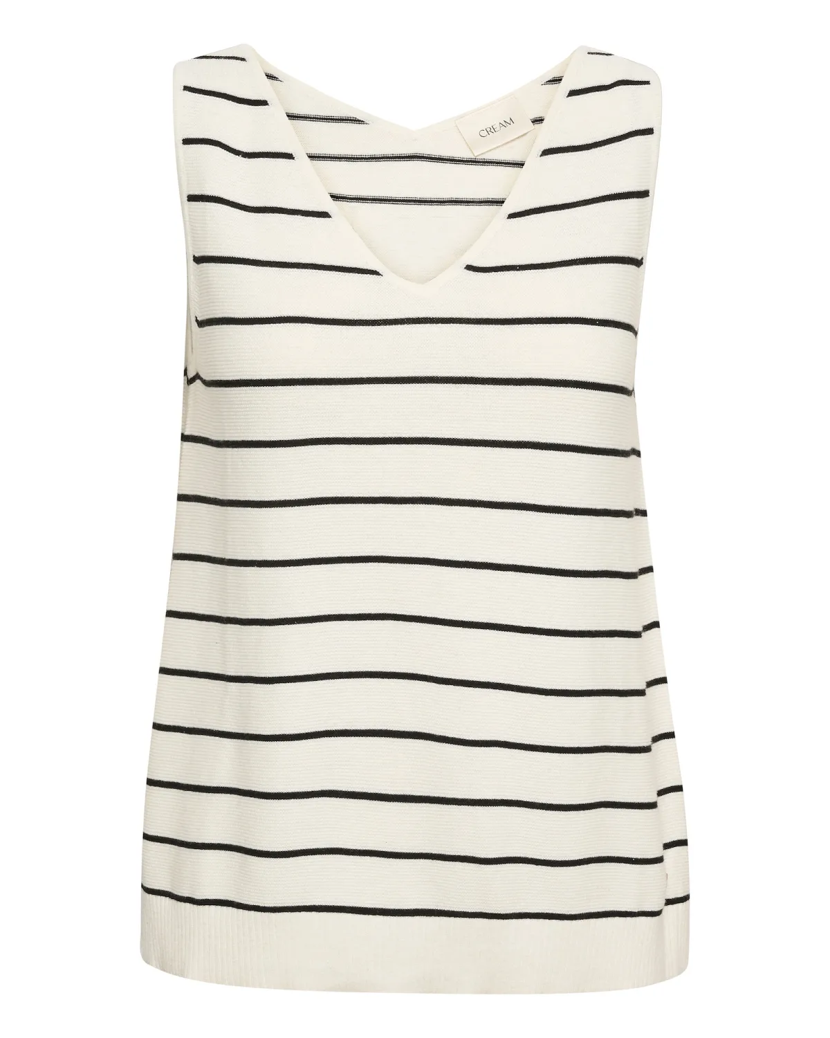 Design: Rechte zoom, Diepe snit/decolleté; Materiaal: Katoen; Halstype: V-hals; Motief: Gestreept; Extra's: All-over patroon, Fully fashioned; Pasvorm: Normale pasvorm; Armlengte: Mouwloos; Lengte: Normale lengte