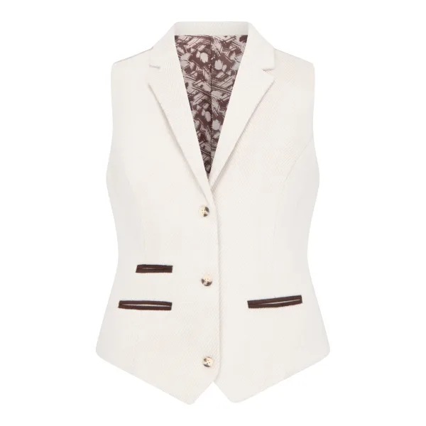 Crèmekleurig getailleerde damesvest van wolmix tweed