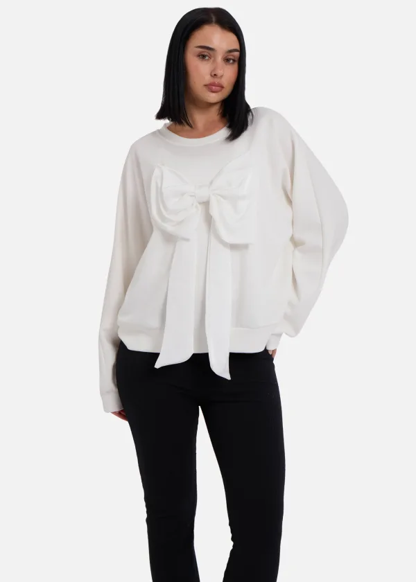 Crèmekleurige oversized trui met strik aan de voorkant Prijzen