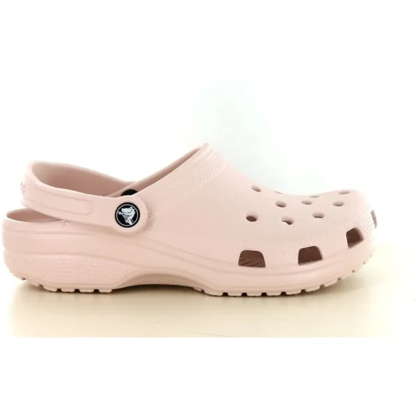 De Crocs Classic clog voor dames in de kleur Quartz is dé perfecte combinatie van comfort en subtiele stijl. Deze zachte lichtroze tint geeft de klassieke Crocs een elegante, vrouwelijke uitstraling en is eenvoudig te combineren met iedere outfit.Het model is gemaakt van het bekende Croslite™ materiaal, dat zorgt voor een uitzonderlijk licht draaggevoel en optimale schokdemping. Hierdoor ervaar je de hele dag door comfort, of je nu een wandeling maakt, thuis ontspant of onderweg bent.De ventilatiegaten zorgen voor een goede luchtcirculatie en helpen je voeten koel te houden, zelfs op warme dagen. Met de draaibare hielband kies je eenvoudig voor extra stevigheid of juist een snelle instap.Dankzij de combinatie van comfort, functionaliteit en een trendy pastel kleur is deze Crocs Classic dames clog een onmisbare basic in je schoenencollectie.