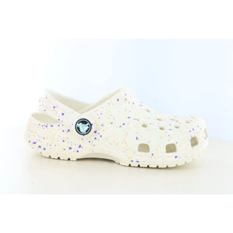 De Crocs Classic Glow Paint clog voor meisjes in Summit White brengt kleur en plezier samen in één opvallende schoen. Het speelse design met vrolijke verfspetters zorgt voor een creatieve en unieke uitstraling – perfect voor kinderen die houden van kleur en avontuur.Deze clog is gemaakt van het bekende Croslite™ materiaal, dat garant staat voor een lichtgewicht gevoel en uitstekende demping. Hierdoor kunnen kinderen de hele dag comfortabel lopen, rennen en spelen zonder vermoeide voeten.De ventilatiegaten zorgen voor frisse voeten, terwijl de draaibare hielband extra steun biedt wanneer dat nodig is. Zo blijft de schoen goed zitten, of je hem nu draagt tijdens het buitenspelen of onderweg naar school.Dankzij de frisse witte basis met kleurrijke accenten is deze Crocs kinder clog makkelijk te combineren met verschillende outfits en een echte blikvanger.