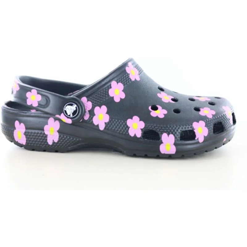Belangrijkste kenmerken & voordelenVrolijke Crocs Classic Flower Clog voor damesSpeelse bloemenprint in roze op zwartGemaakt van lichtgewicht en dempend Croslite™ materiaalVentilatieopeningen voor optimale luchtcirculatieDraaibare hielband voor extra stabiliteitIdeaal voor dagelijks gebruik, vakantie en vrije tijd ProductomschrijvingBreng kleur in je dag met de Crocs Classic Flower Clog voor dames in zwart met roze bloemenprint. Deze opvallende clog combineert het iconische comfort van Crocs met een vrolijke, zomerse uitstraling. Perfect voor wie comfort wil zonder in te leveren op stijl.Het zachte en lichte Croslite™ materiaal vormt zich naar je voet en zorgt voor uitstekende demping bij elke stap. Hierdoor zijn deze clogs ideaal voor langdurig gebruik, zowel binnenshuis als buitenshuis. De ventilatiegaten houden je voeten fris en dragen bij aan een prettig draagklimaat, zelfs op warme dagen.Dankzij de handige draaibare hielband kies je eenvoudig voor een stevige pasvorm of een relaxte instap. De bloemendetails geven deze clog een unieke, vrouwelijke touch die perfect past bij casual outfits.Of je nu een dagje weggaat, in de tuin werkt of gewoon comfortabel wilt lopen: met deze Crocs bloemen clogs zit je altijd goed.