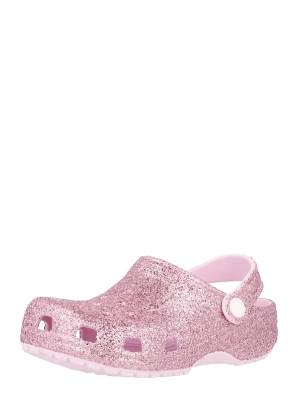 Met de Crocs Classic Chunky clog voor meisjes in pink milk steel je gegarandeerd de show. Deze opvallende clog combineert het iconische comfort van Crocs met een volledig glitterdesign, waardoor elke stap een sprankelend effect krijgt. Perfect voor meiden die houden van een trendy en speelse look.De chunky platform zool geeft deze Crocs een moderne en stoere uitstraling, terwijl het tegelijkertijd zorgt voor extra demping en ondersteuning. Ideaal voor dagelijks gebruik – van spelen buiten tot een dagje weg of vakantie.Het bekende Croslite™ materiaal maakt deze clog ultralicht, flexibel en comfortabel. De schoen vormt zich naar de voet en biedt langdurig draagplezier zonder drukpunten. Dankzij de ventilatieopeningen blijven de voeten goed geventileerd, zelfs tijdens warme dagen.Het praktische instapmodel zorgt ervoor dat kinderen de schoenen eenvoudig zelf aan en uit kunnen trekken. Bovendien zijn deze Crocs makkelijk schoon te maken en sneldrogend – ideaal voor actieve kids.