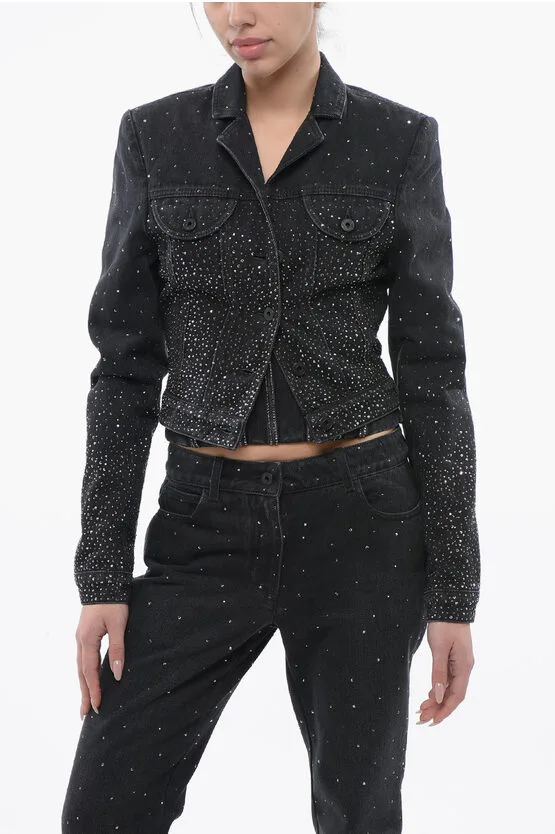 Cropped Fit BLING Denim Jack met Strass in Zwart Prijzen