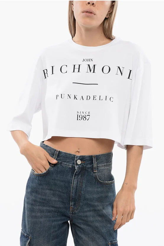 Cropped GENYA T-shirt met oversized pasvorm in wit Prijzen