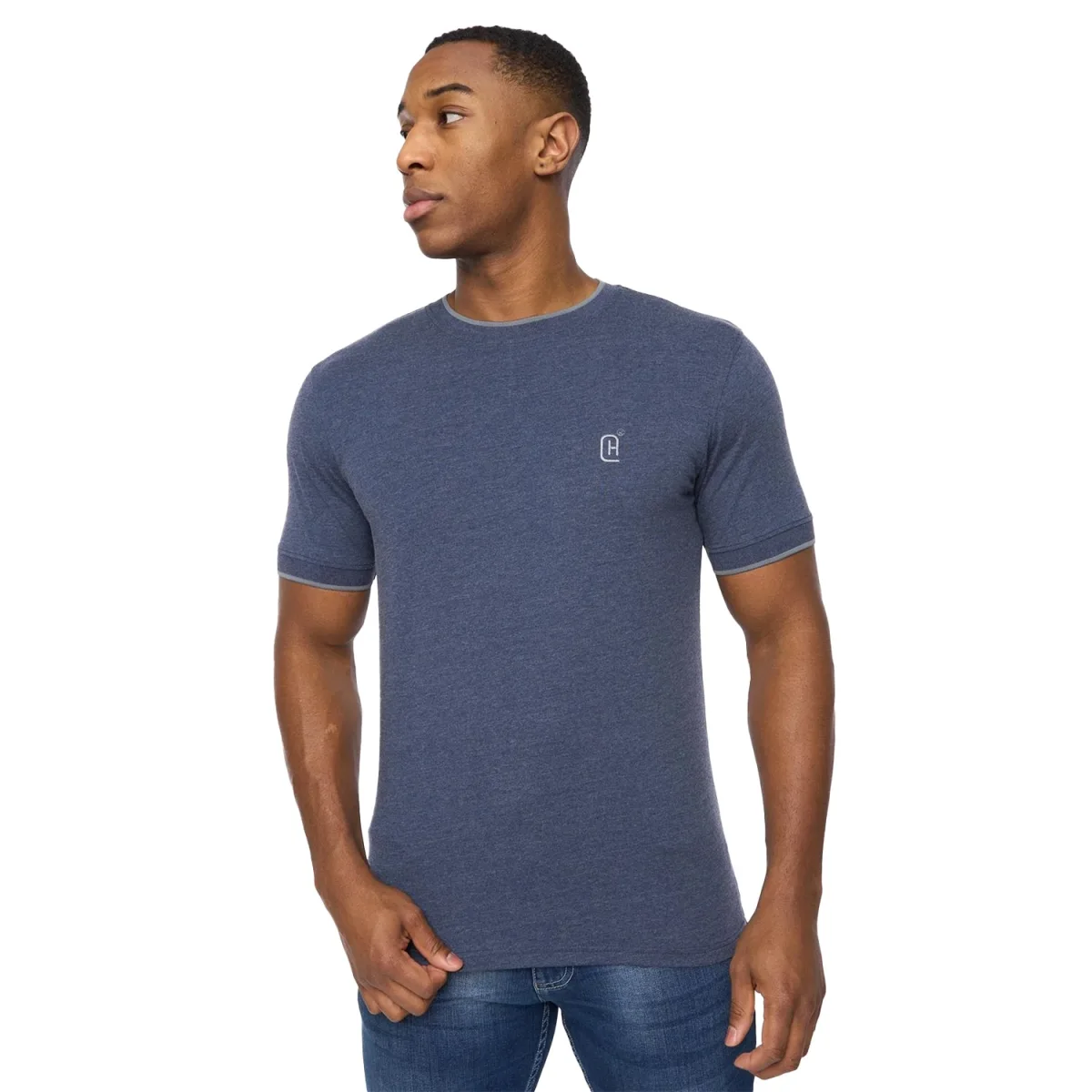 Crosshatch Heren Einstip T-Shirt (Marine Marl) Prijzen